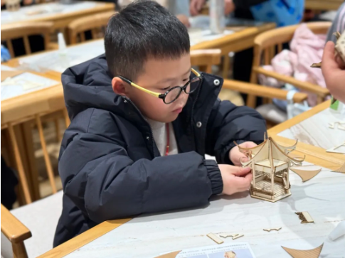 最后,学生们以展厅中的“计成亭”为参考范例,制作了一座六角亭,并赋予了亭子独一无二的名字。通过本次活动,学生们不仅学会了用造园者的视角欣赏中国古典园林,并感受到中国传统建筑之美。
